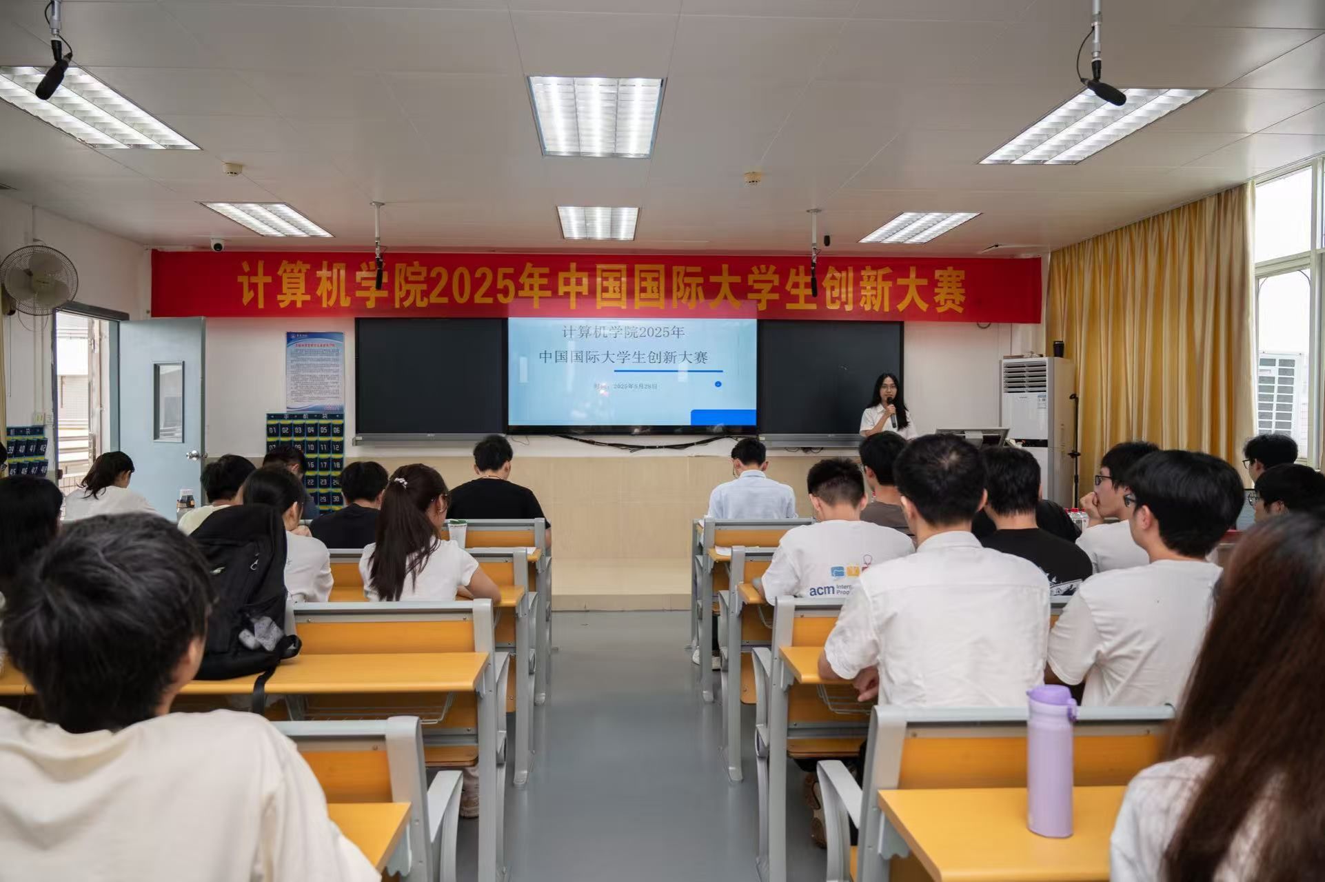 5月28日下午,我院在锡昌科技大楼607室成功举办计算机学院2025年中国国际大学生创新大赛。本次比赛邀请了东软教育科技集团总经理乐杰、广州粤嵌通信科技股份有限公司运营总监蔡佳祥、世杰客属青年创新创业中心运营古顺婷以及嘉应学院创新创业学院李彬峰老师作为评委,学院师生共100人参加。