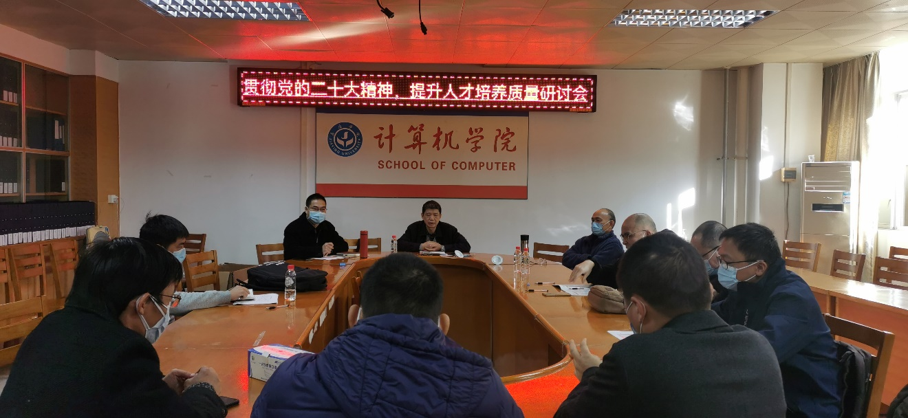 计算机学院于12月21日上午在锡昌科技大楼208室召开“贯彻党的二十大精神,提升人才培养质量”研讨会。会议由计算机学院党委书记梁秉艳主持,参会人员包括学院党政领导、各专业负责人、系主任(正副)、教授和博士,会议就以下议题包括工程教育认证工作、学院学科竞赛工作、人才培养方案与(核心)课程组目标建设,以及各专业本科四年阶段技能目标的设定等展开研讨。