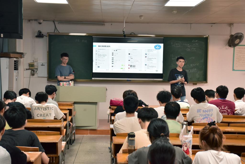 2023年5月31日下午,我院在锡昌科技大楼502举办了学科竞赛经验分享会。本次分享会由学院ACM算法队成员范淮宝、陈雪武同学主讲,共有110名学生参加。