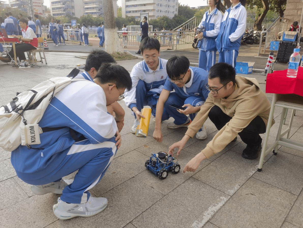 作为梅州市科技创新领域的重要活动之一,本次校园科技创新节旨在激发青少年的科技创造力和创新精神,推动科技教育的普及与深化。活动开始前,我院学生党员志愿者等对机器人技术和产品进行了充分的学习和准备。在活动期间,进行了丰富多彩的技术产品展示活动,演示了爬行机器人、遥控机械臂、无人机模型、AI智能对话模型、机器人舞蹈等在内的多项科技成果和创新项目。这些活动内容既生动展示了我院在相关领域的研究成果,也为参与活动的该校师生提供了与科技前沿接触的机会,激发了他们的科技兴趣和创新潜能。