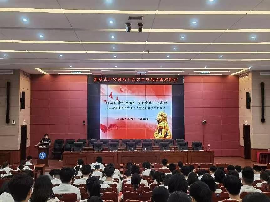 在新质生产力背景下,推动大学生综合素质的提升,是当前大学教育的重要任务。我院将进一步加强党建工作,落实两会精神,通过丰富多彩的活动和实践项目引导学生增强社会责任感和创新意识,提升大学生综合素质,主动适应数字经济发展需求,造就新时代的数字工匠,将学生培养成为德智体美劳全面发展的社会主义建设者。