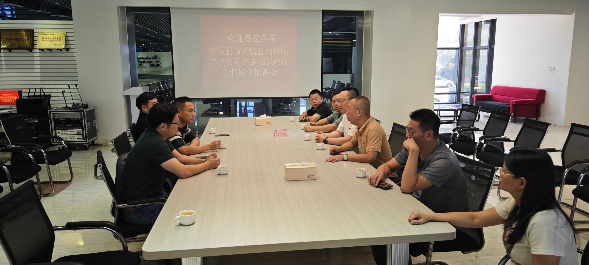 丰顺县市场监督管理局局长杨昆,副局长郑春广、蔡征涛等热情接待了调研组,并就科技成果推广转化等问题进行了深入交流和工作部署,并就相关工作的未来合作具体方向进行了深入探讨。